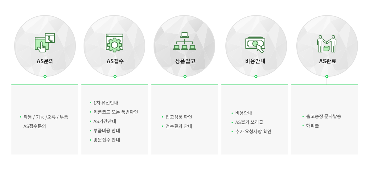 - 부품구매 추가 부품 필요 시, 금액안내 및 입금확인, 출고 후 송장번호안내