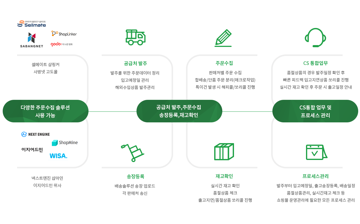 자사몰 솔루션 뿐 만 아니라, 각종 외부몰 전산처리